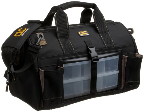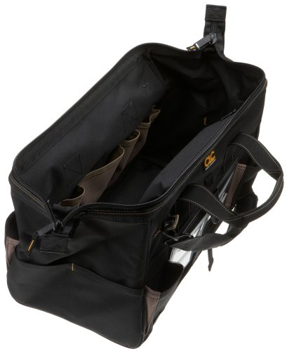 - 14 Multi-use outside pockets and 8 inside pockets to organize a wide range of tools and accessories.- Padded web carrying handle and adjustable shoulder strap.